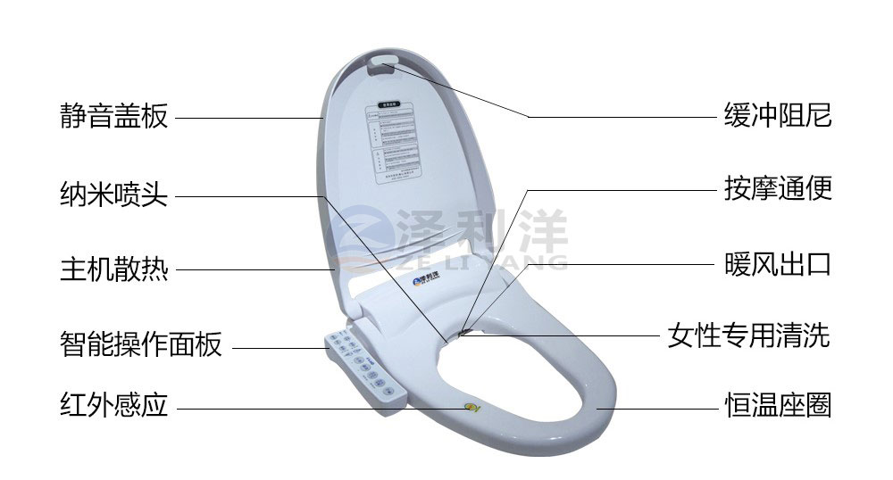 公司旗下“澤利洋”牌衛浴系列產品以領先行業的研發技術、精益求精的制造工藝、卓越完美的組合產品為追求,具有帶線遙控器、電腦自動控制、女性專用清洗、通便清洗、磁化水殺菌、水壓風溫調節、座圈感應、抗菌功能、活水瞬熱、全自動清洗烘干、防干燒、噴嘴自潔、水溫調節、自動延時關機、通用清洗、助便功能、阻尼緩沖、漏電保護、防超溫、座圈調節、自動除臭、噴管移動調節、故障報警等眾多人性化、高科技功能,改變了傳統用紙擦拭的便后清潔方式,不僅能徹底清潔、干凈、衛生、舒適;還能有效預防痔瘡、便秘、腸道病毒感染及許多婦科疾病的發生,是最佳的清潔措施;常使用還有助于清潔體內宿便,排除毒素,避免直腸癌的發生。